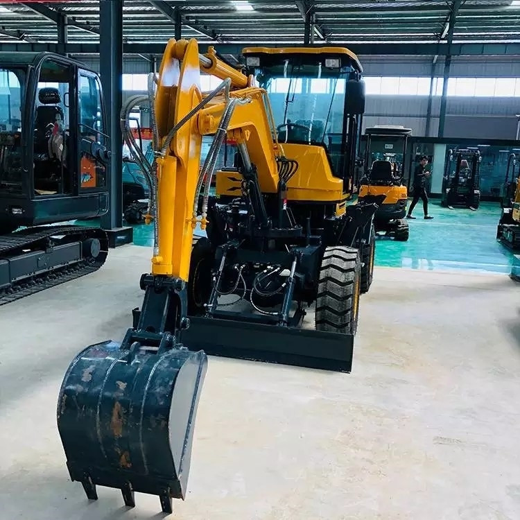 中型轮式挖掘机市政工程开荒多功能皮轮挖机可360度旋转