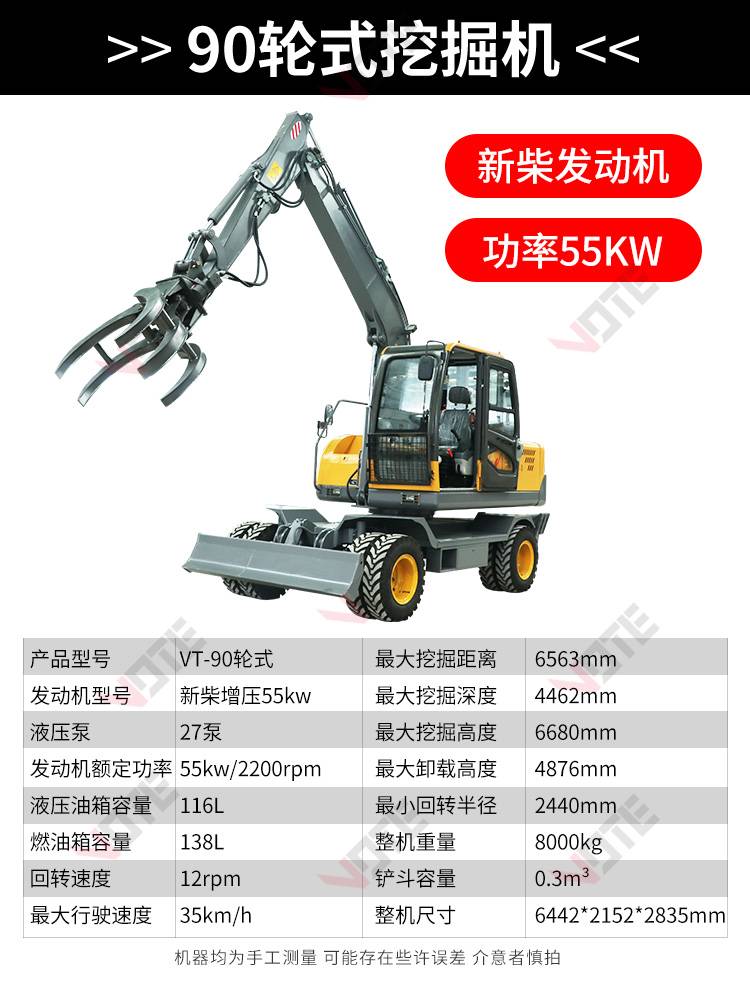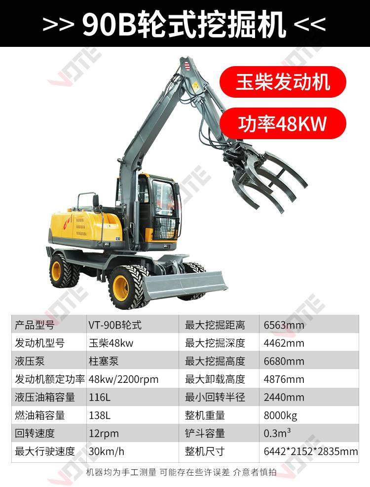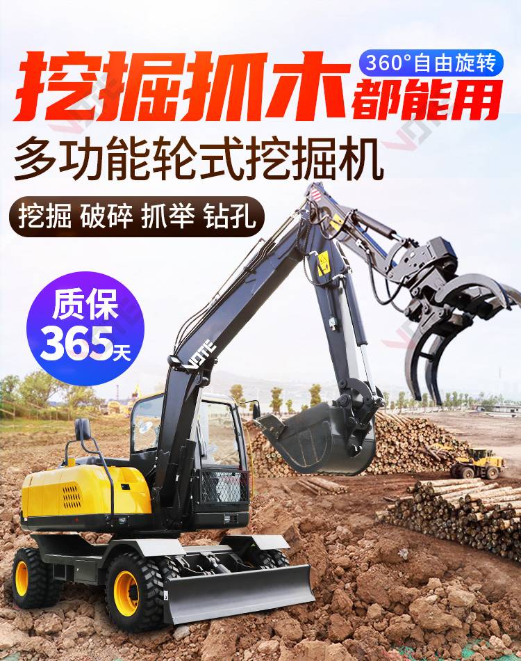 厂家知道95轮式挖掘机可抓木一机多用整机质保售后无忧欢迎来电