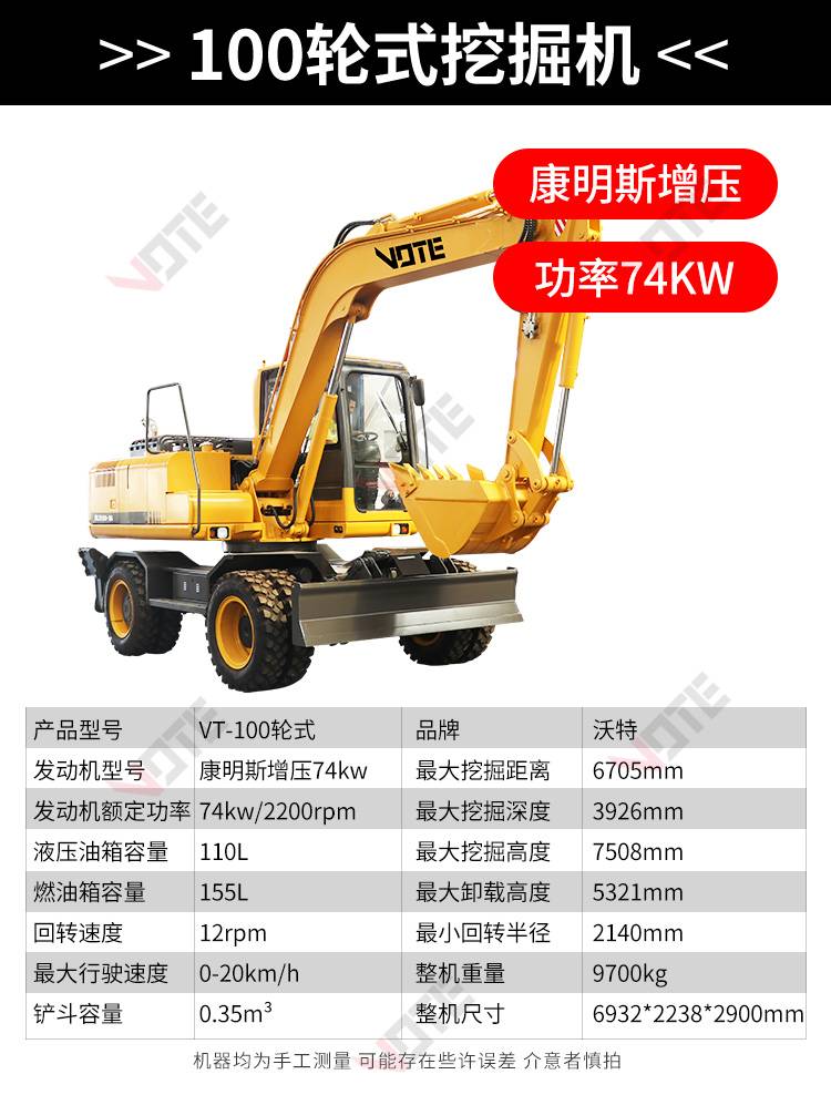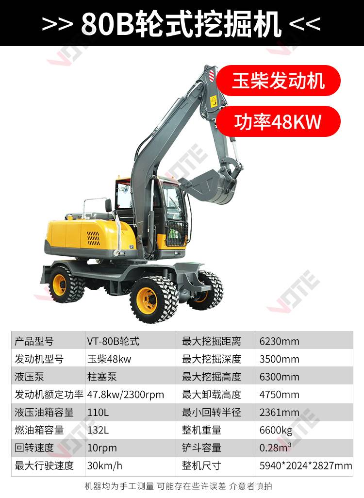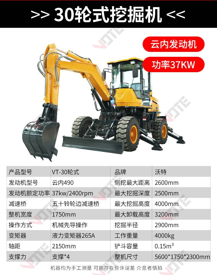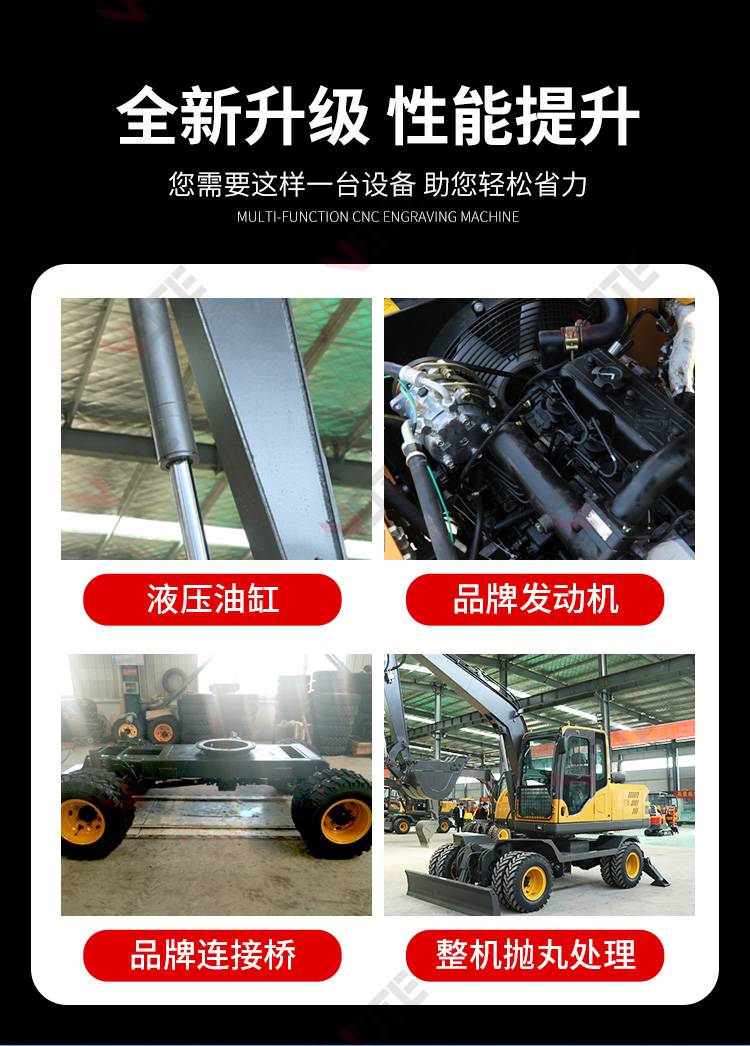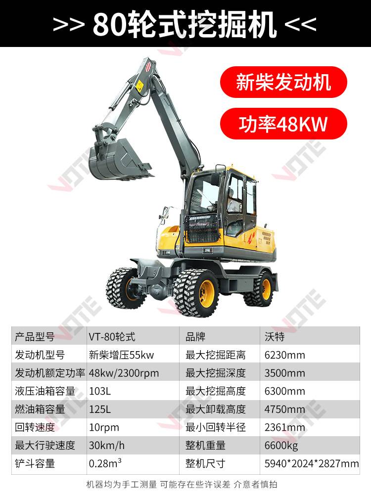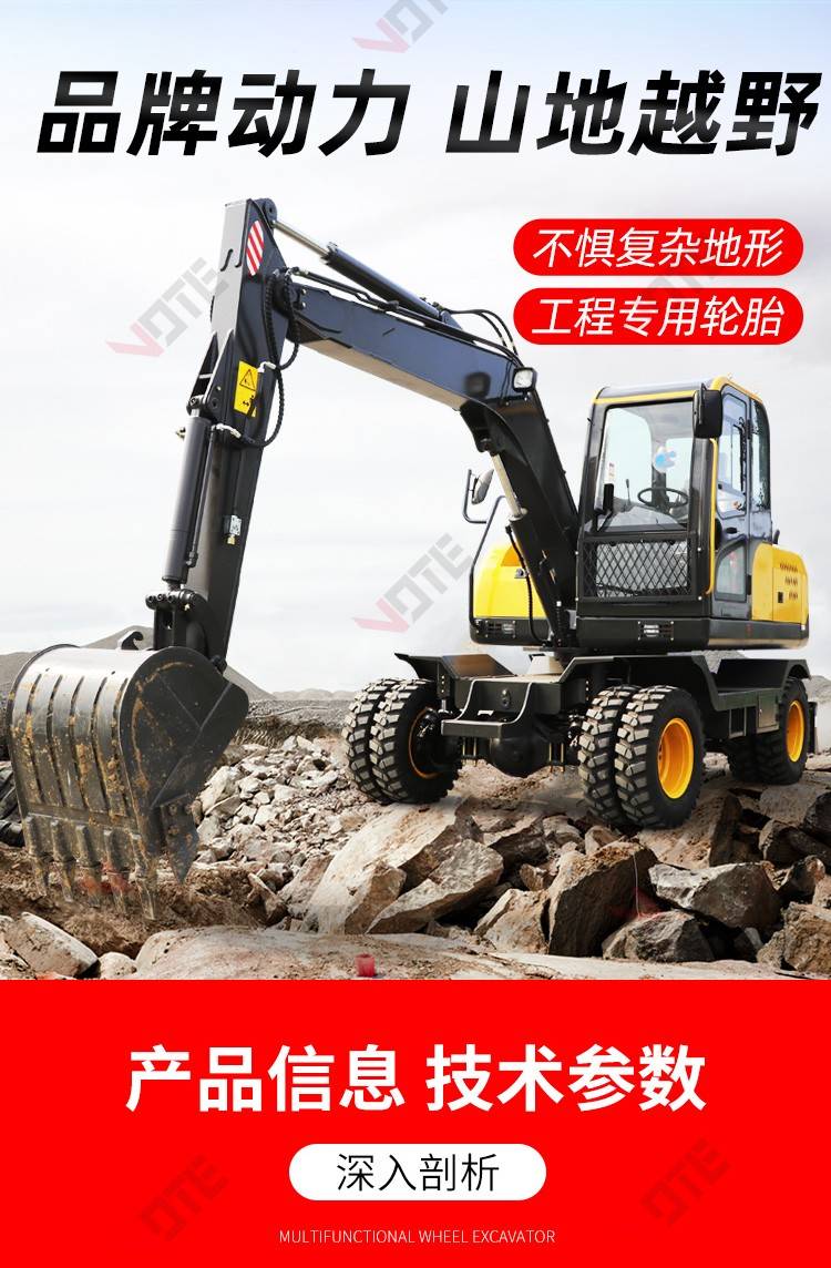 中型轮式挖掘机市政工程开荒多功能皮轮挖机可360度旋转
